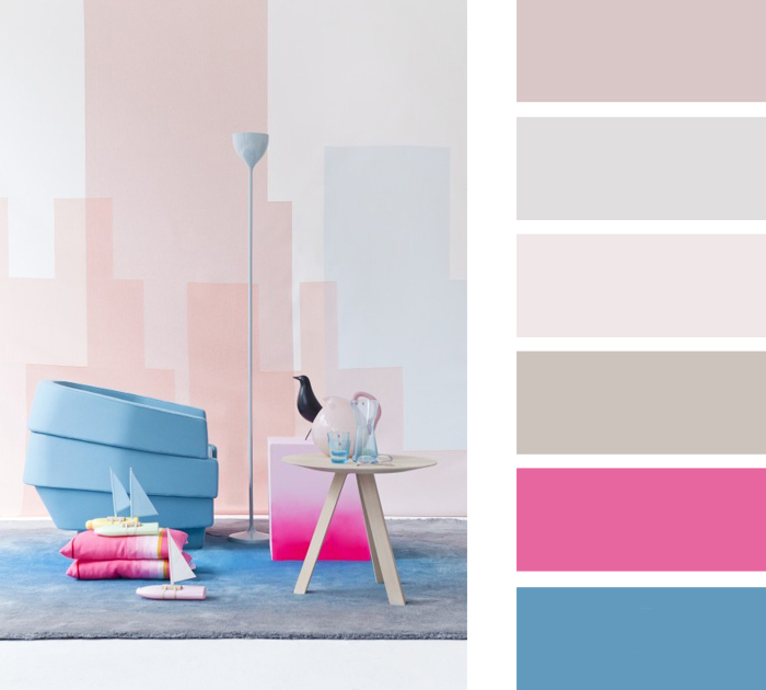 Посмотрите, как хорошо нежно-голубой дополняет сочетание розового и серого.