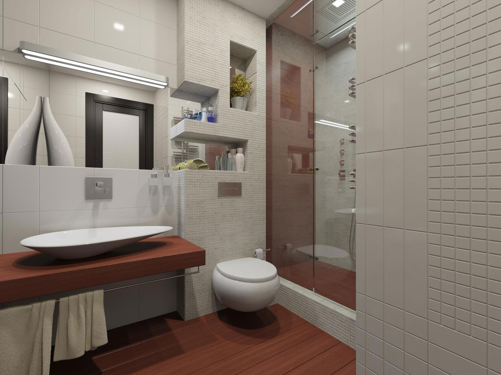 Дизайн маленького совмещенного санузла должен работать на объем пространства.