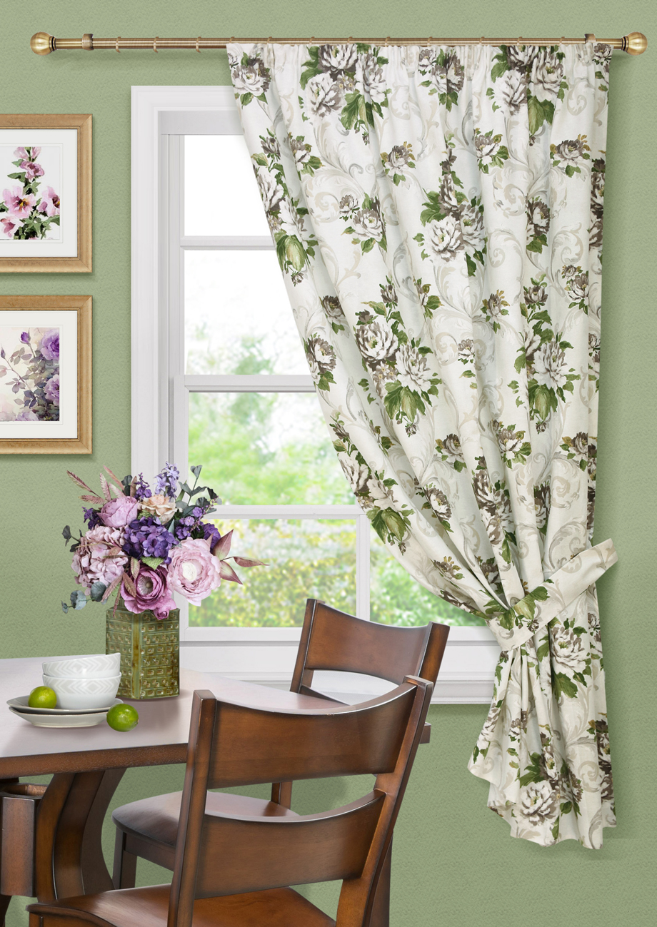 Модели из одного или двух полотнищ можно разнообразно задрапировать, закрепить лентами или кольцами. Такой прием позволяет обновить внешний вид кухни по торжественному случаю или просто под настроение.