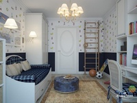 | Зона отдыха (главная, основная) | Если площадь позволяет поставить две отдельные кровати, то это считается лучшим вариантом. У парнишек будет полное равноправие, благодаря наличию собственной территории. В противоположном случае (если территория не позволяет), имеется множество разновидностей двухъярусных кроватей, которые могут подойти по стилевому решению к любой тематике. |