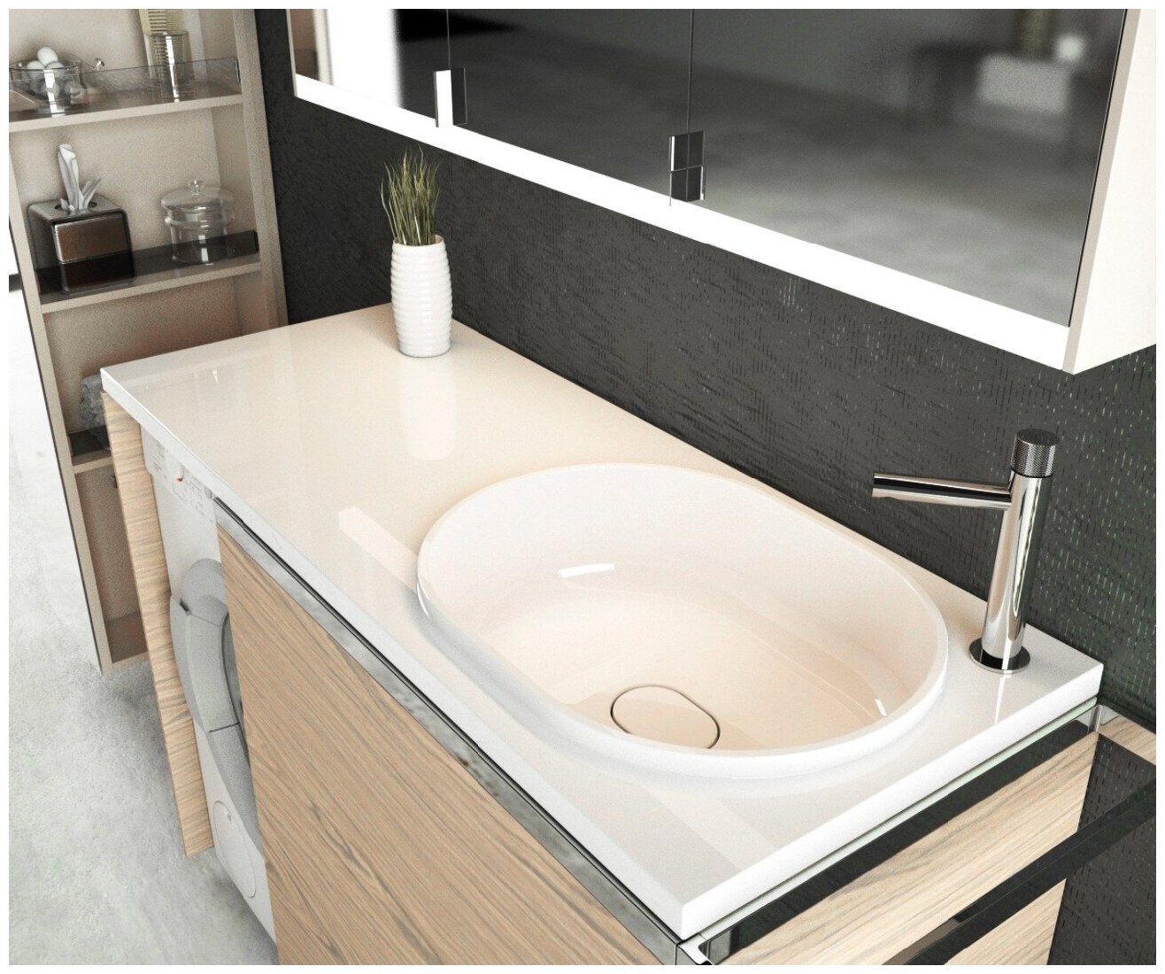 Ещё одно преимущество накладных раковин в том, что их не обязательно устанавливать вплотную к стене, как стандартные умывальники.