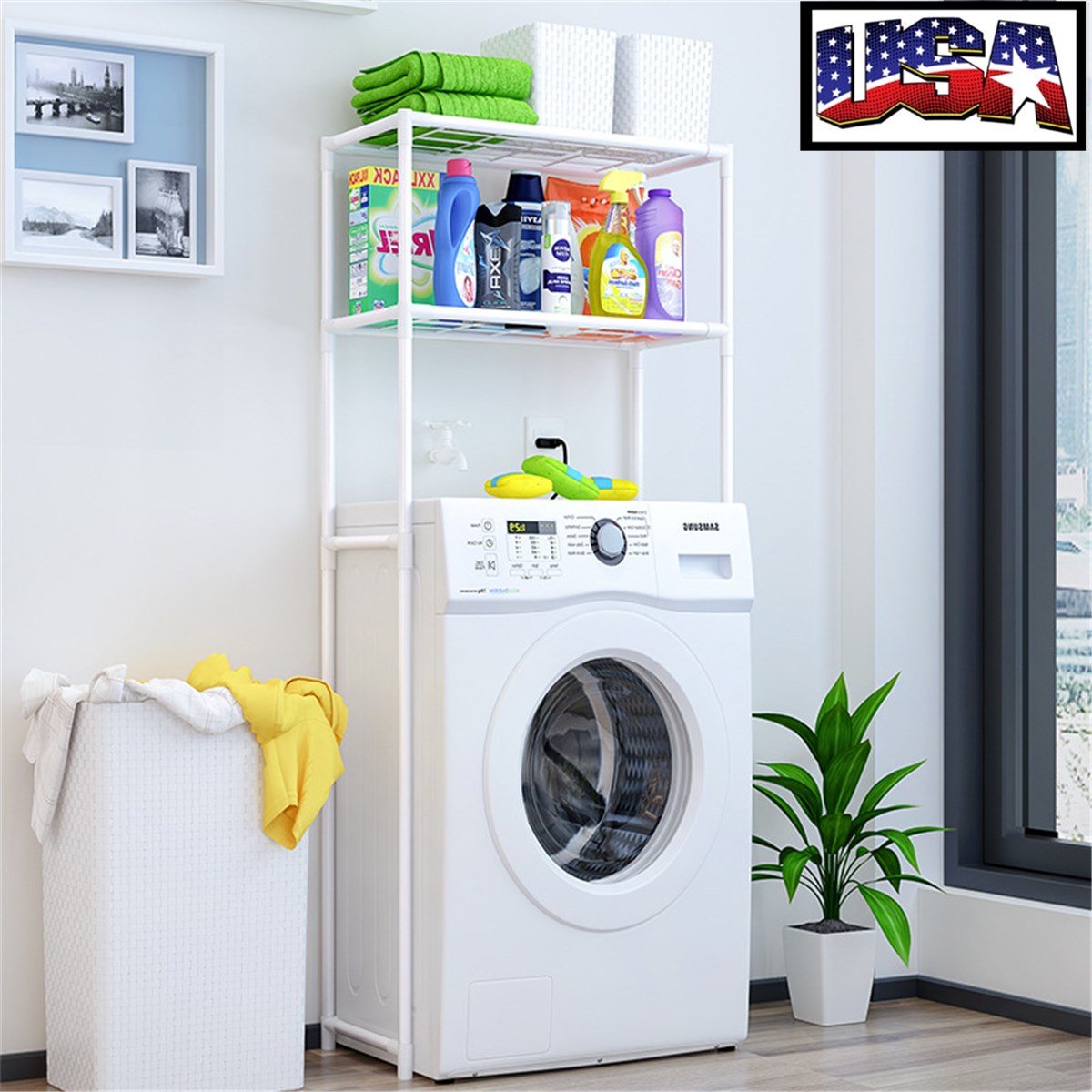 Amazon.com: Регулируемый органайзер для ванной комнаты BAOYOUNI над стиральной машиной Полка для хранения сушилки 2-х уровневая стеллаж для экономии места (24.