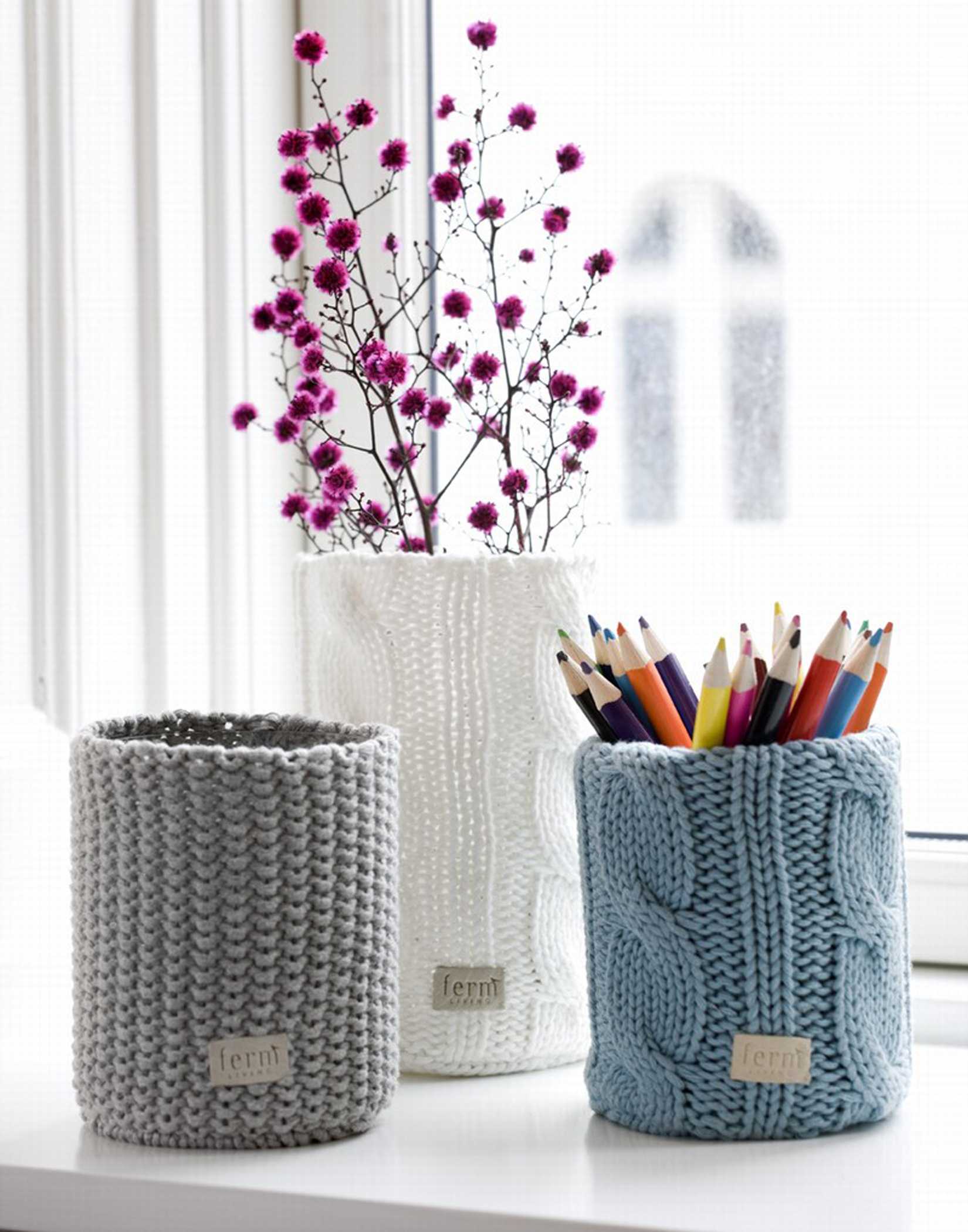 - Если вы умеете вязать, вы также можете создать для дома много интересного. Например, крючком можно связать ажурные салфетки и скатерти. Если вы вяжете на спицах, у вас может получиться превосходный плед крупной вязки или сумки для хранения вещей в шкафах.