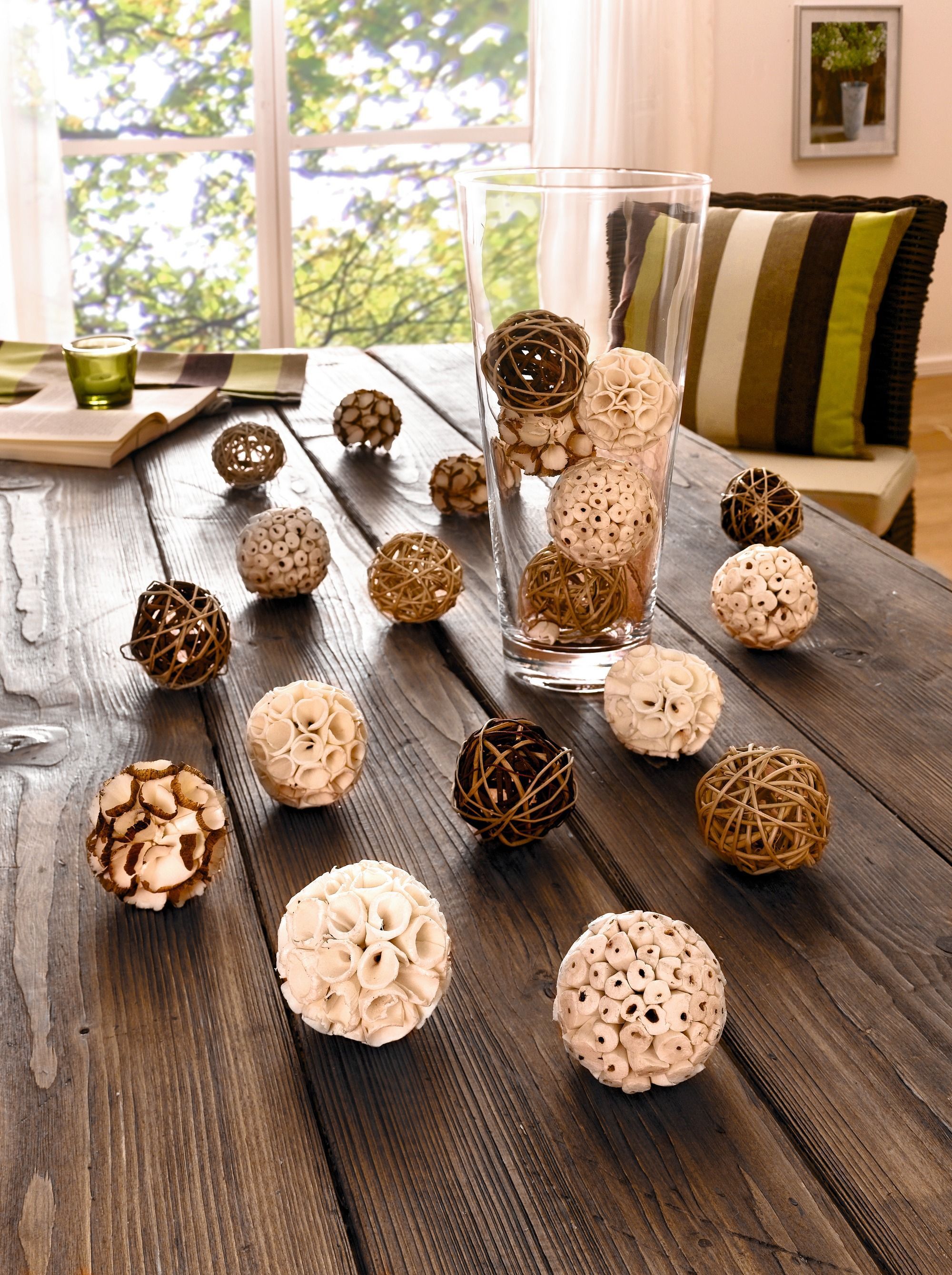 - Вазу можно украсить, наполнив ее различными украшениями. Подойти может все что угодно – красивые раковины, бусины, камни, сушеные ветки и цветы. Разложите их красиво внутри вазы и наслаждайтесь оригинальными украшениями – такая ваза отлично впишется в ванную комнату или спальню.