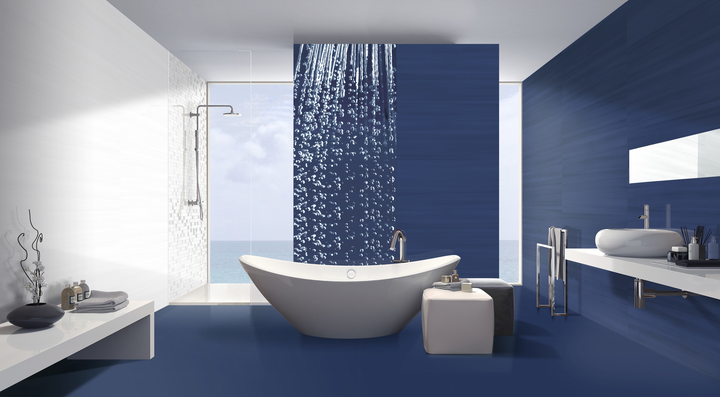 Плитка в синем цвете и многогранных его оттенках может быть использована в различных стилистических направлениях. Цвет применяют в качестве основного фона или для создания цветовых композиций.