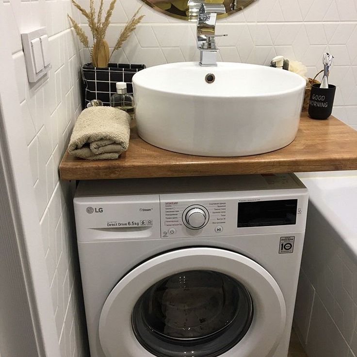 Для маленьких ванных комнат некоторые производители сразу предлагают комплект «раковина + стиральная машина». Оборудование в таком комплекте идеально подходит друг к другу по размерам, а в упаковке сразу идет все нужное для установки. Однако такой набор обойдется дороже на 10–15%, чем если подбирать стиральную машину и раковину по отдельности.