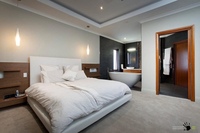 В том же самом ключе создаются и отдельные элементы интерьера для спальни. Ведь ванная в спальне предполагает большую влажность, которая не всегда подходит для отдельных электрических приборов. Поэтому появилась специальная серия светильников, ночников, мебели, телевизоров и аксессуаров, рассчитанных на повышенную влагу в спальной комнате.