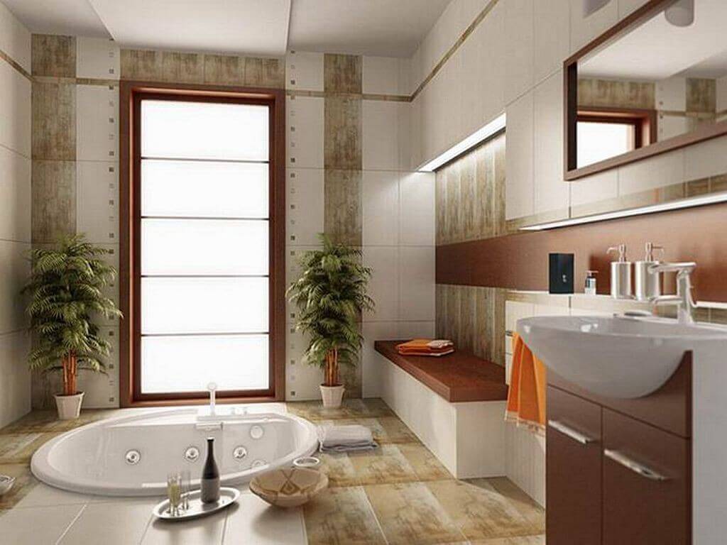 Отделка ванной комнаты современной и модной кафельной плиткой