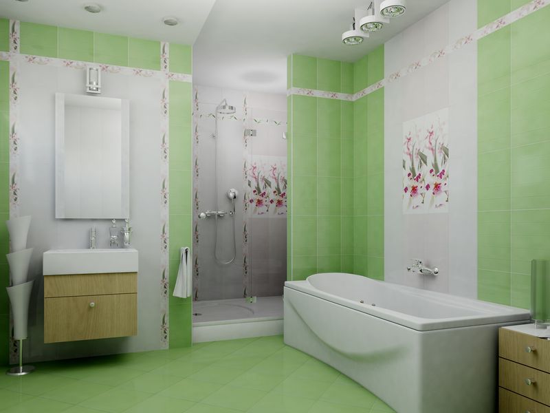 Тем не менее, при оформлении ванного пространства в нежно — зеленом цвете необходимо учитывать, что для этого существует три основных способа: