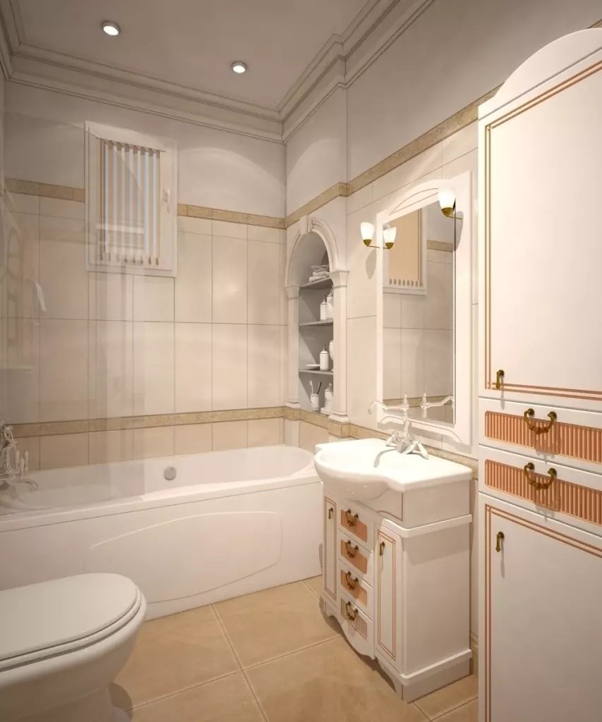 Классический стиль не накладывает запретов на ванны неординарного дизайна или необычной формы и расцветке, но все же лучше остановиться на традиционном варианте светлых оттенков.