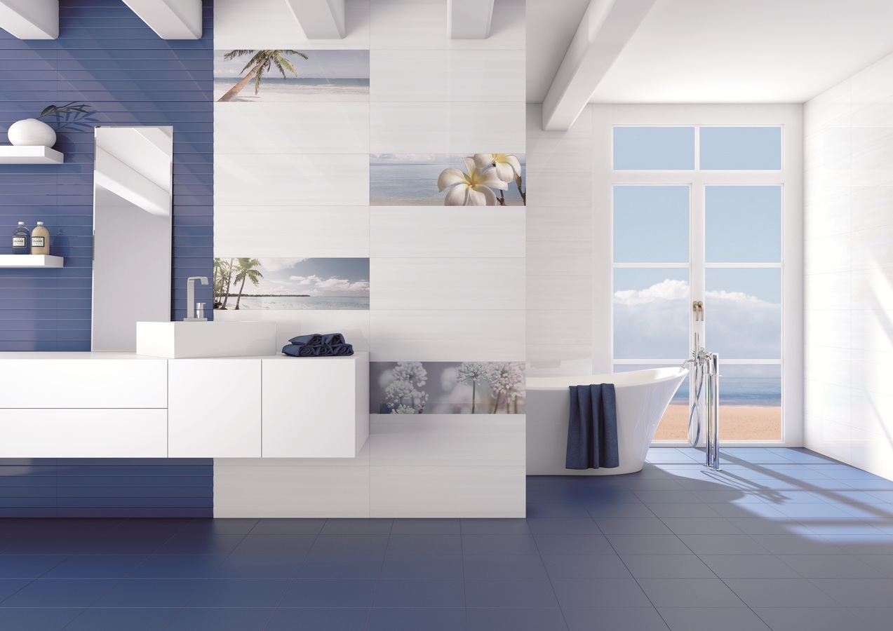 Первая ассоциация, которую будет вызывать ванная в синем цвете, — это море.