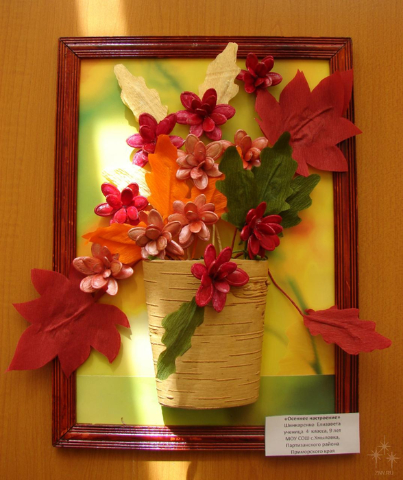 Дерево из тыквенных семечек – поделка Тыквенные семечки пользуются не меньшей популярностью при создании детских поделок, нежели их сородичи из подсолнуха. Сегодня предлагаем вам некоторые идеи по созданию деревьев из этого материала с использованием разных техник. |