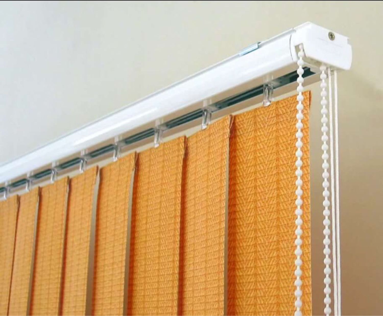 Выбирая вертикальные пластиковые жалюзи лучше смотреть на модели с алюминиевым карнизом.