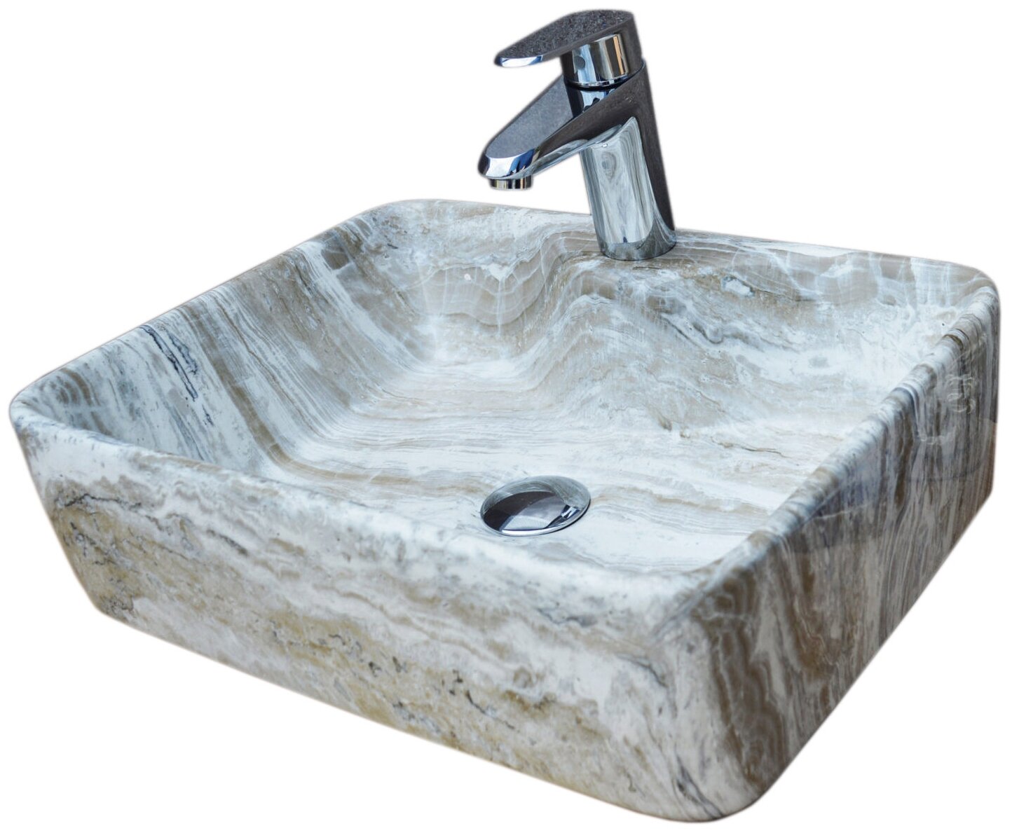 Такие раковины являются дорогостоящими сантехническими приборами, поскольку изготавливаются из цельного куска натурального камня (мрамора или гранита). Кроме большой цены, мраморная раковина неудобна тем, что из-за пористой структуры этого камня на поверхности раковины образуется стойкий грязевой налет, который убрать практически невозможно. Конечно, более практичными в этом отношении являются раковины гранитные, которые, кроме того, и стоят немного дешевле мраморных. Однако и у тех и у других есть общие недостатки:
