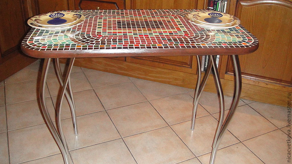 Она выкладывается на МДФ, ДСП или влагостойкий гипсокартон. Использование плитки позволяет создать оригинальный узор, а сама поверхность долговечна, устойчива к влаге, моющим средствам, механическим повреждениям. Но такие столешницы нуждаются в особом уходе, в частности регулярного затирания швов между плитками.
