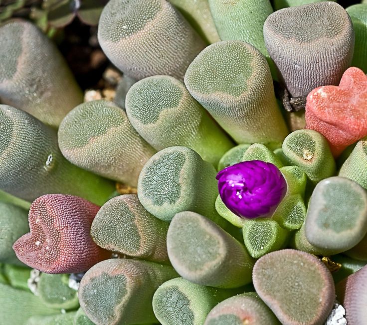 Очень необычный вид. Внешне напоминает камушки. Устойчив к высоким температурам и засухе.