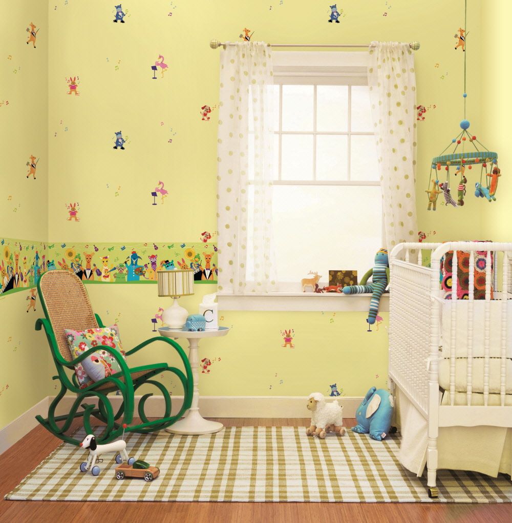 Обои в детской не должна нагружать психику ребенка, настраивать на позитивный лад, способствовать хорошему настроению, концентрации. В данных аспектах подойдет зеленый. Что он собой представляет? Это сочетание желтого и синего. Это противоположные колеры по психологической нагрузке, синей отличается спокойствием, позволяет обеспечить хорошие условия для отдыха, способен успокоить ребенка.