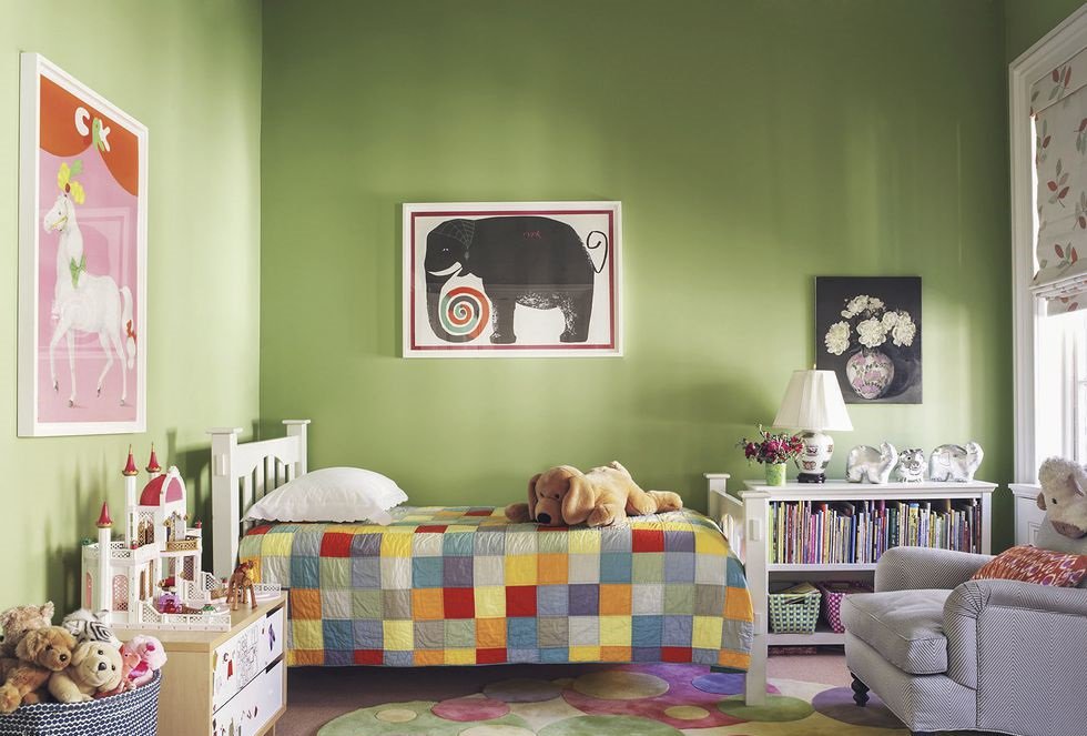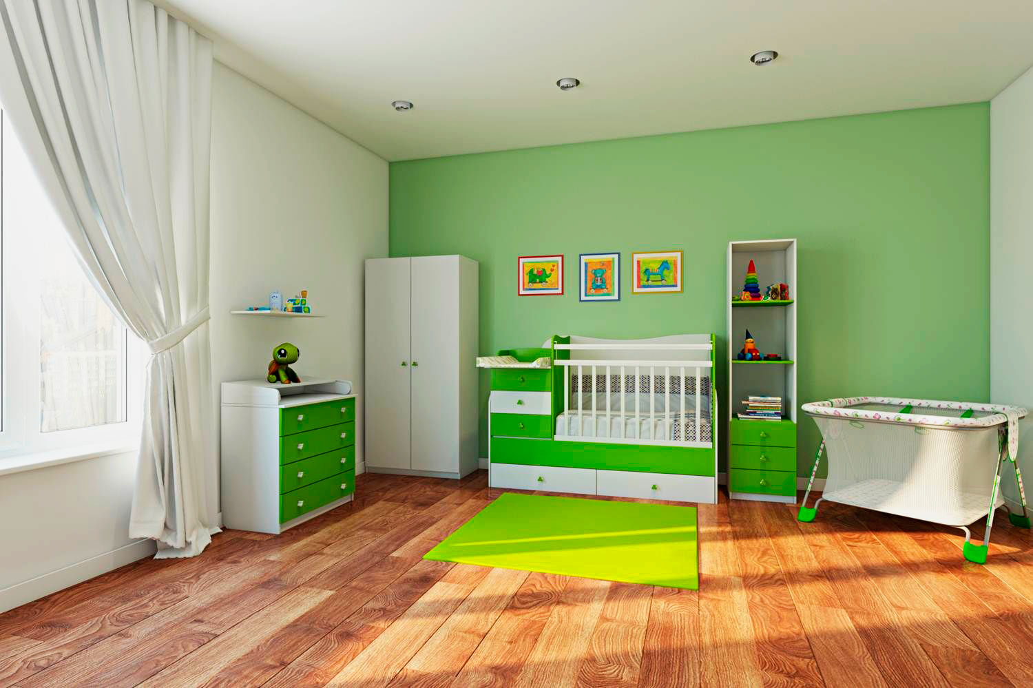 Если вы решили выбрать для стен в детской обои зеленого оттенка, важно правильно определить оттенок. Для данного помещения отлично подойдет:
