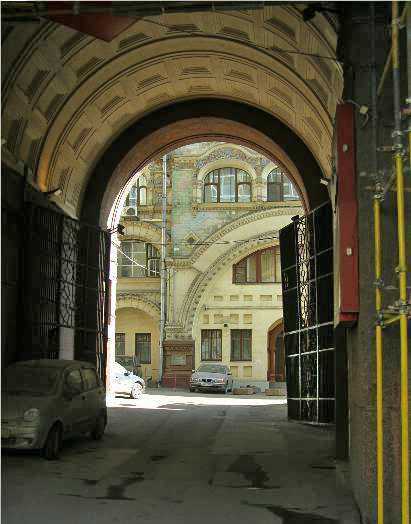 Но самый расцвет проходных дворов, проездных арок, дворов-колодцев приходится на рубеж веков, с конца XIX века и до 1914 года. Последние жилые многоэтажные дома в стиле эклектики и модерн – вот в этих домах количество арок превыше всего. Арки чисто функциональные, можно сказать – скромные, и арки шикарные, призванные показать высокую категорию дома. Мол, чем шикарнее входная арка, тем выше престиж жителей дома. Вот один из таких домов на Пушкинской улице, 9 (Большая Дмитровка), дом с магазином «Чертежник», очень популярном у студентов МАрхИ в шестидесятые годы.
