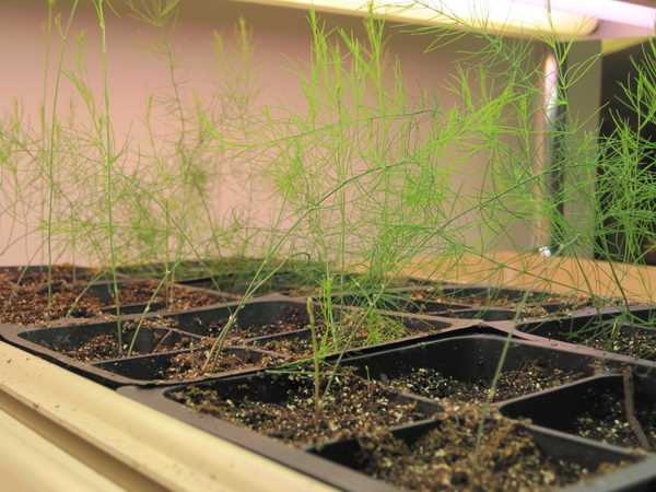Всходы размножаемого семенами аспарагуса появляются через 20–40 дней. И как только над поверхностью грунта становятся видны зеленые иголочки, растение требует переноса на свет. А при необходимости ему обеспечивают и дополнительную подсветку, чтобы ростки не были чрезмерно вытянутыми и слабыми.Аспарагус из семян — видео