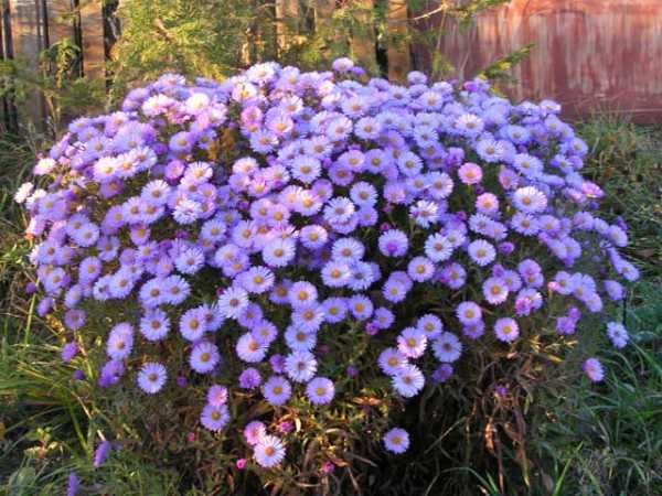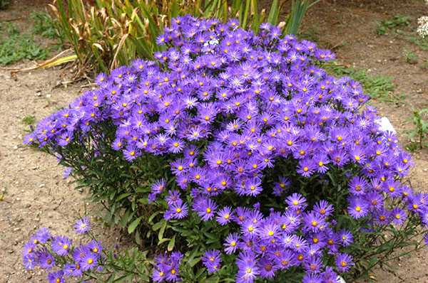 Астра кустарниковая (Aster dumosus, Symphyotrichum dumosum). Невысокие кустики этой астры широко распространяются благодаря своим ползучим побегам. Отличное почвопокровное растение, в частности, для участков на склонах, т.к. сдерживает эрозию грунта. Природный цвет — лилово-голубой, существуют сорта розового окраса. См. фото астры кустарниковой в моем саду ниже. Из собственного опыта скажу, что это одно из тех растений, о которых вспоминаешь, когда оно начинает цвести, настолько астра кустарниковая неприхотлива.