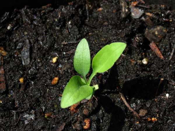 Первые всходы появятся уже на 5–6 день, после чего полив следует сократить. После того как образуются два настоящих листочка, сеянцы рассаживают по отдельным пластмассовым стаканчикам. Это способствует формированию более крепкой и мощной корневой системы.