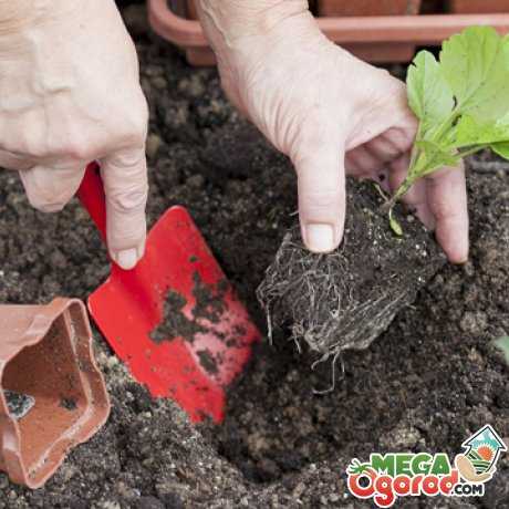 - Опускать в лунку растение нужно аккуратно, не повредив корневую систему.