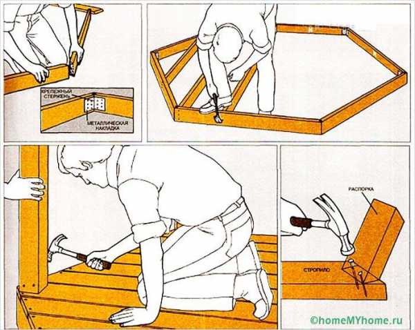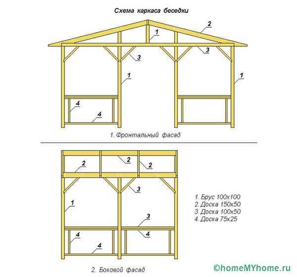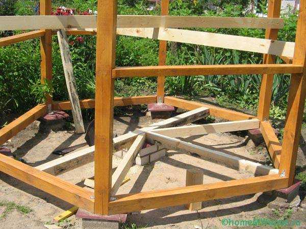 Важно! Чтобы конструкция беседки из досок стала по-настоящему удобной, многие элементы каркаса впоследствии приходится доделывать и совершенствовать. Поэтому первоначально в процессе сборки каркаса и обшивки не используйте неразъемных соединений.