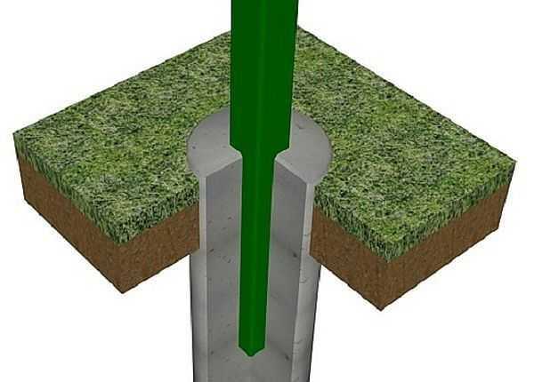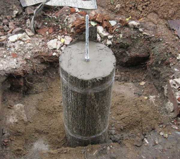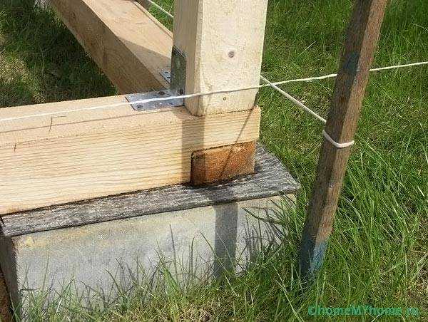 Для надежности конструкции на этапе возведения фундамента можно заложить в каждый столб металлический прут, на который вставится основание деревянной стойки.