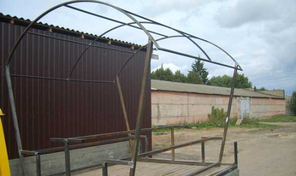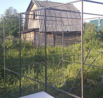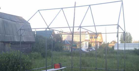 После сборки металлического каркаса нашей постройки накрываем ее навесом из пленки — и наша летняя беседка полностью готова!