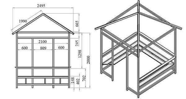- В качестве инструмента возьмите циркулярную и лучковую пилу, шуруповерт, электрорубанок, рулетку, крепежные материалы. Также мы предлагаем фото, где вы сможете ознакомиться с внешним видом такой конструкции. Поэтапный способ строительства будет описан ниже.
