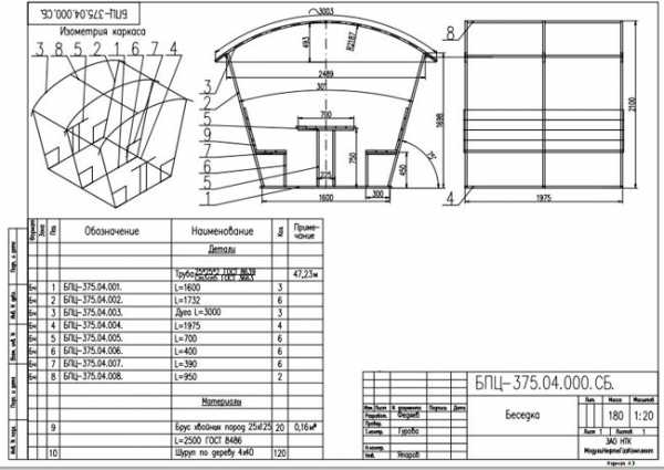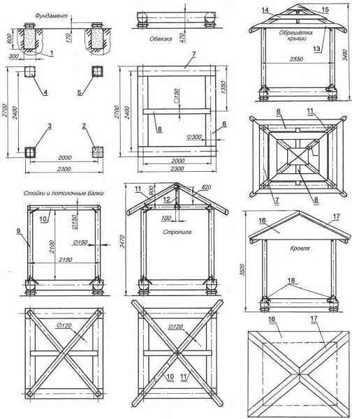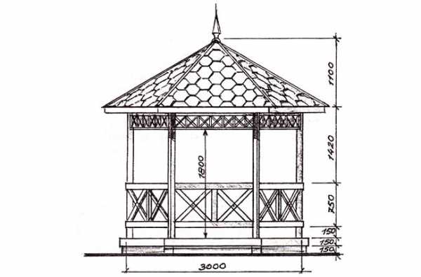- Составьте проект, подготовьте чертежи. Не забудьте определить вместимость сооружения – сколько человек сможет сесть внутри, не стесняя друг друга? Схемы берутся уже готовые, рисуются с нуля или адаптируются под собственные нужды. Подробный план всегда учитывает размеры беседок, способы крепления, составляющие части. Он выполняется в нескольких сечениях, чтобы предусмотреть абсолютно все детали задолго до начала работы, высчитать нужное количество материалов.
