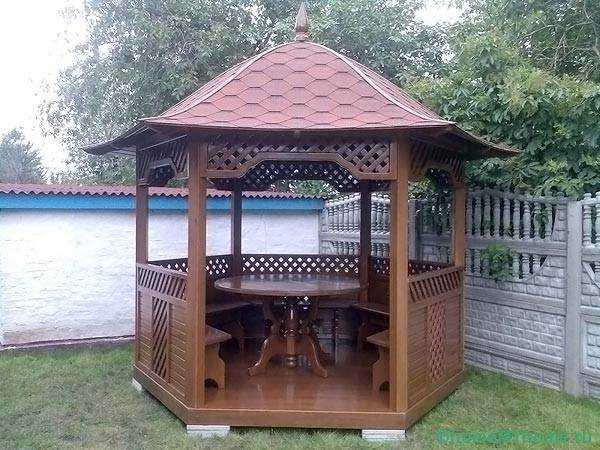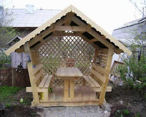 Именно такую беседку мы будем делать своими руками без привлечения посторонних помощников.