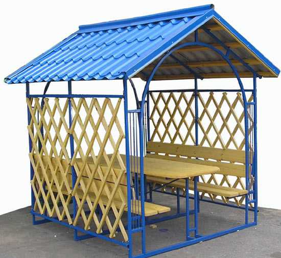 Летняя беседка из металла отличается от других построек более легкой конструкцией, к тому же зимой Вы не часто будете бывать на своем участке, и наверное, хотели бы, чтобы ее конструкцию можно было легко разобрать и спрятать до наступление нового теплого сезона.