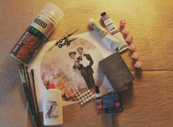 - Основа для часов. Желательно выбрать деревянную основу, однако вы можете использовать любой другой удобный материал.