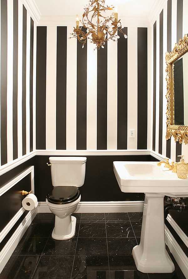 Черно белая ванная комната полосатая фото