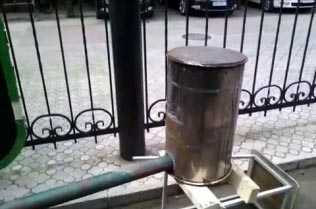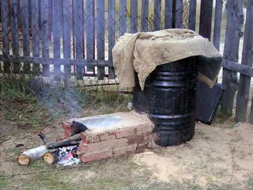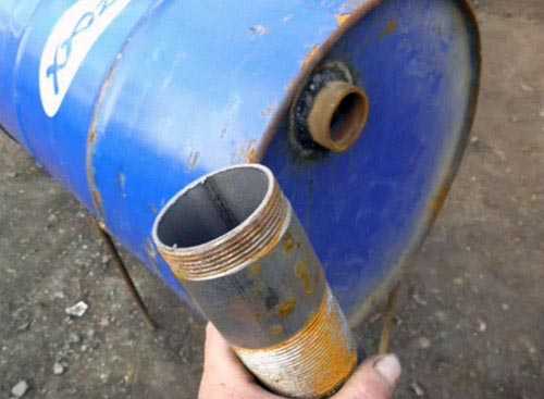 - Берется металлическая бочка, в которой проделывается отверстие для подсоединения печной трубы.
