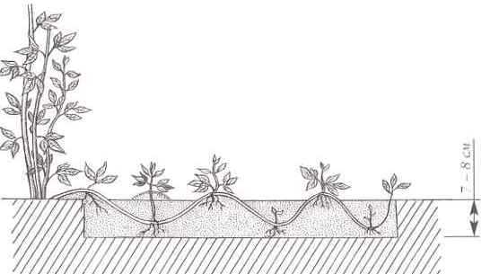 Способ размножения отростками дает больший процент укоренения. Часть веток лианы, попадая на землю, начинает формирование корней. Если в это время, не отрезая отросток от ветки, разместить его в почве в торфяном горшочке, то через месяц, вы сможете отделить здоровый укоренённый саженец от основного куста. Важно обильно поливать саженец в горшочке.
