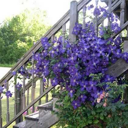 Клематисы — настоящая звезда среди лазящих растений. Это быстрорастущие многолетние лианы семейства лютиковых с гибкими, тонкими стеблями. Декоративны у растения цветки, листья и семена. Клематисы обильно цветут с июня до сентября. Есть среди них сорта, дающие одновременно до нескольких сотен цветов, диаметром до 23 см. Клематисы вьются, цепляясь за различные опоры, и достигают высоты 2,5-3 м, а некоторые — 7-9 м. Особенно хороши эти растения для вертикального озеленения садовых участков — для декорирования стен, заборов, трельяжей, террас.