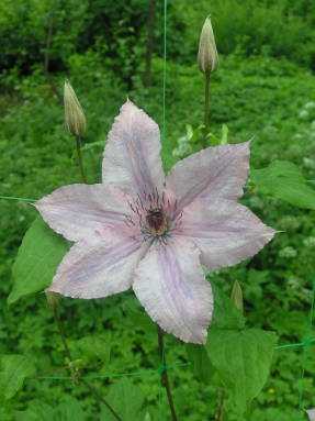 Клематису обязательно нужна опора, причем, ячейки сетки должны быть достаточно большими – до 15 см, тогда с них легко снять лиану, обрезать и накрыть на зиму.