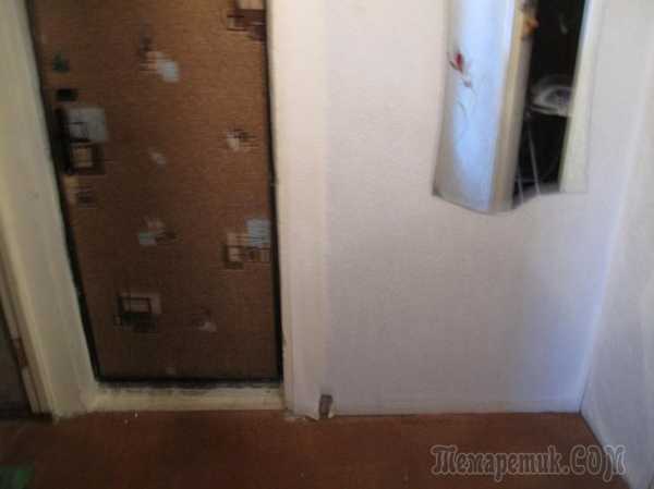 Прежде чем перейти к главной теме,хочу немного вас ввести в курс дела. Это квартира доченьки и прихожую решила привести в порядок я сама. Сначала были оклеены стены обоями и потолок тоже.На пол настелила новый утеплённый линолеум и прикрутила напольные плинтуса. Изначально было вот так.