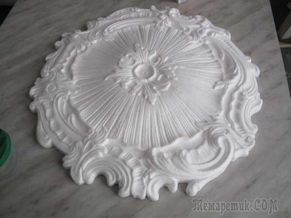 Купила вот такую потолочную розетку,покрасила перламутром и лаком…
