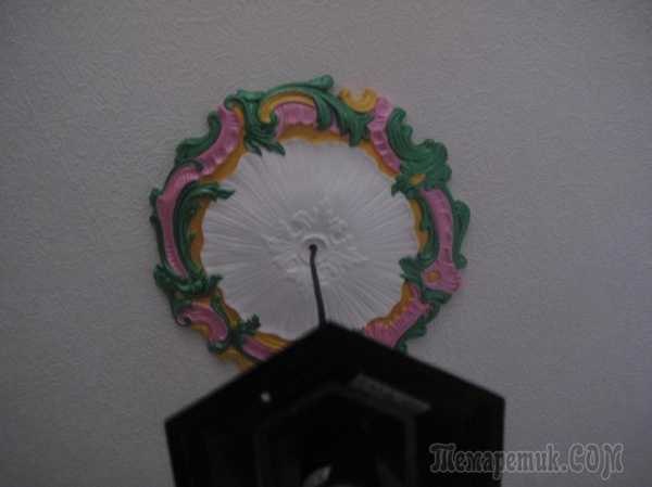 На фото №9,где обратный декупаж «Роза» , немного виден на потолке декор розетки для люстры…случайно попал в кадр.