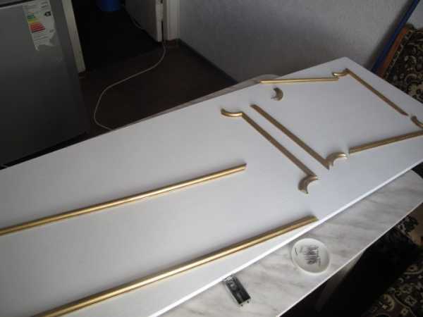 Точно так же поступила с остальными дверцами. Детальки под позолоту покрасила и на свои места прикрепила на мелкие гвоздички без шляпок и на клей дополнительно.