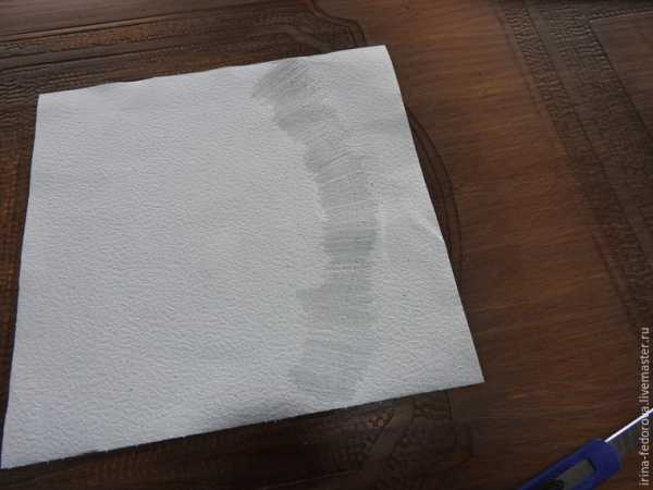- Подготовка рисунка. С салфеток снимается дополнительный слой бумаги. Орнамент вырезается;