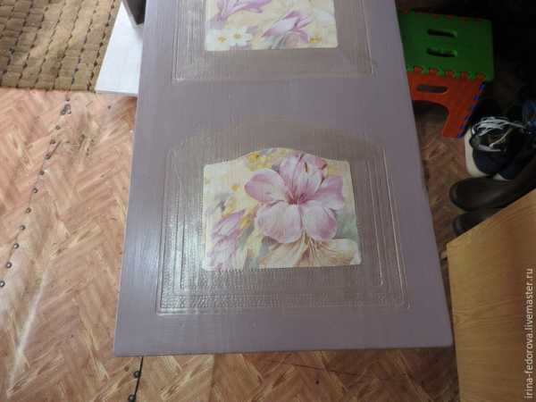 12. День третий. На этом этапе мы наносим акриловый лак. Я на дверцы нанесла 5 слоев, а на остальные поверхности 3 слоя. Обязательно просушивайте каждый слой. К вечеру все просохло.