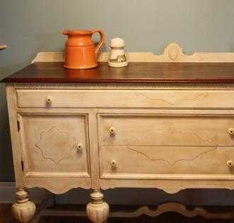 - Покраска поверхности. Если оригинальный цвет буфета Вас не устраивает, его можно выкрасить или искусственно состарить;