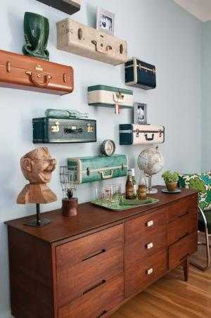 У многих шкафов в нижней части есть большие выдвигающиеся ящики. Фурнитуру и разного рода наклейки следует удалить, а заднюю стенку утолстить с помощью доски таким образом, чтобы она соответствовала передней по толщине и высоте. В результате этого у нас получится ящик, который можно использовать как настенную полку. Эту полку можно разделить на отделения, заполнив их самыми разными предметами. Из полки получается оригинальное настенное украшение, если покрасить ее в темные сочные тона.
