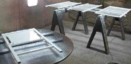 - Покрываются шпатлевкой дыры, сколы и прочие неровности. Высохшая поверхность опять шлифуется, убирается пыль со столика.
