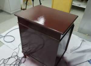 - Для окраски берется эмаль с распыляется на мебель краскопультом.